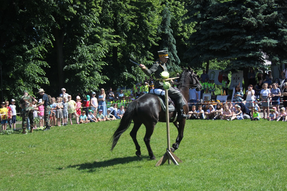 Dzisiaj przed południem na boisku Szkoły Podstawowej nr 2 dali pokaz musztry oraz popisali się umiejętnościami władania szablą i lancą. Pokaz rozpoczął się od meldunku złożonego burmistrzowi Krzysztofowi Derezińskiemu przez dowódcę oddziału.