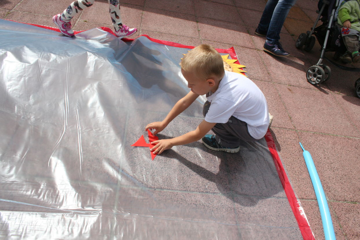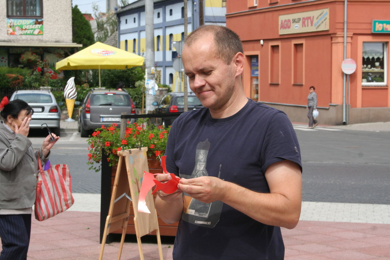 Uśmiech Pana z Domu Kultury jest pięknym podsumowaniem tego miłego dla dzieci dnia. Plac jest bardzo brzydki, ale fajnie, że na tej okropnej brzydocie prezentują się ładne pomysły.
