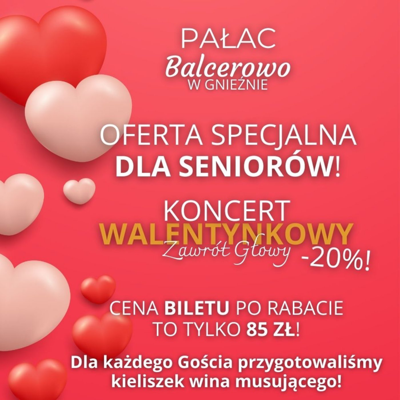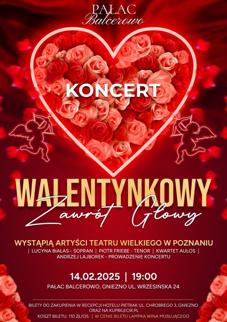 Sieć Hoteli Pietrak zaprasza na wyjątkowy koncert walentynkowy, który odbędzie się w klimatycznym Pałacu Balcerowo. „Walentynkowy Zawrót Głowy” to idealna okazja, by spędzić wieczór w romantycznej atmosferze i cieszyć się piękną muzyką.