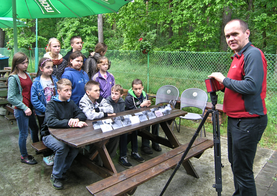 Podczas bloku fotograficznego p. Marceli Konieczny pokazał uczestnikom jak własnoręcznie z przedmiotów – które mamy pod ręką – można wykonać aparat fotograficzny, którym na domiar wszystkiego możemy wykonać (prawie natychmiastowe) proste fotografie. Całe warsztaty można podsumować jednym zdaniem: „w godzinę od puszki po coli do zdjęcia”. Ciekawe prowadzenie warsztatów przez pana Marcelego spowodowało, że oprócz wykonywania własnoręcznych (od A do Z) zdjęć, grupa dowiedziała się jak „kiedyś” wyglądała fotografia i jak długą drogę ewolucyjną przeszła ona do dziś.