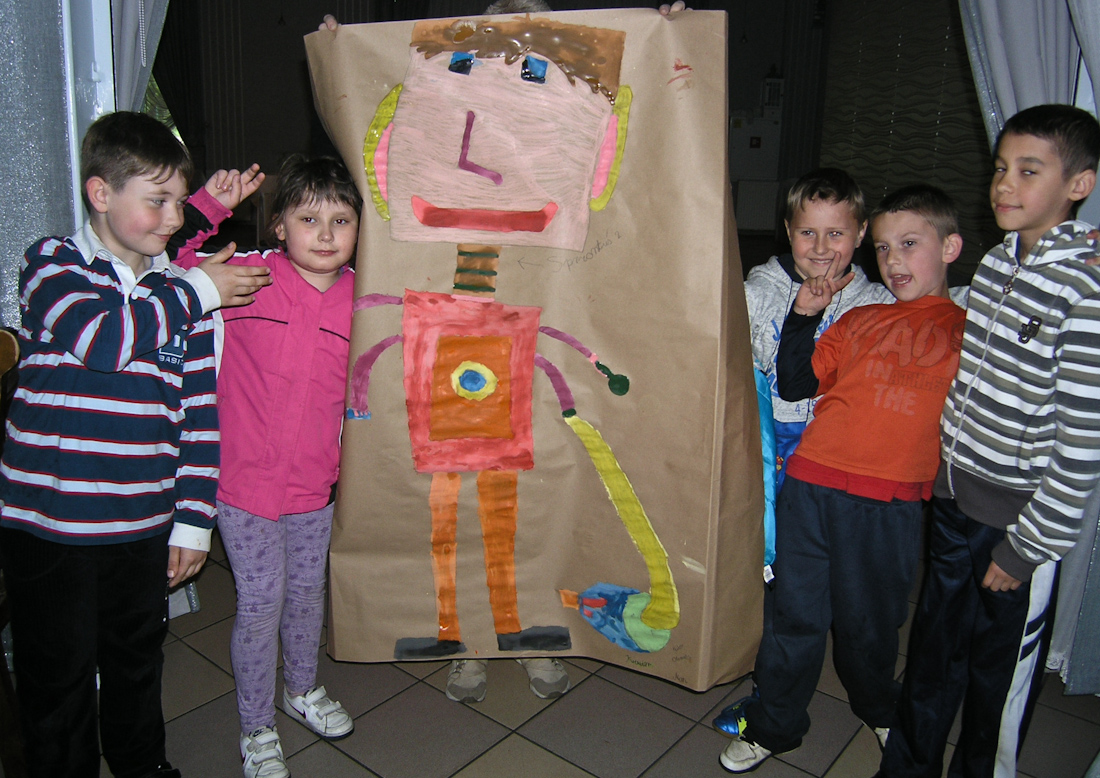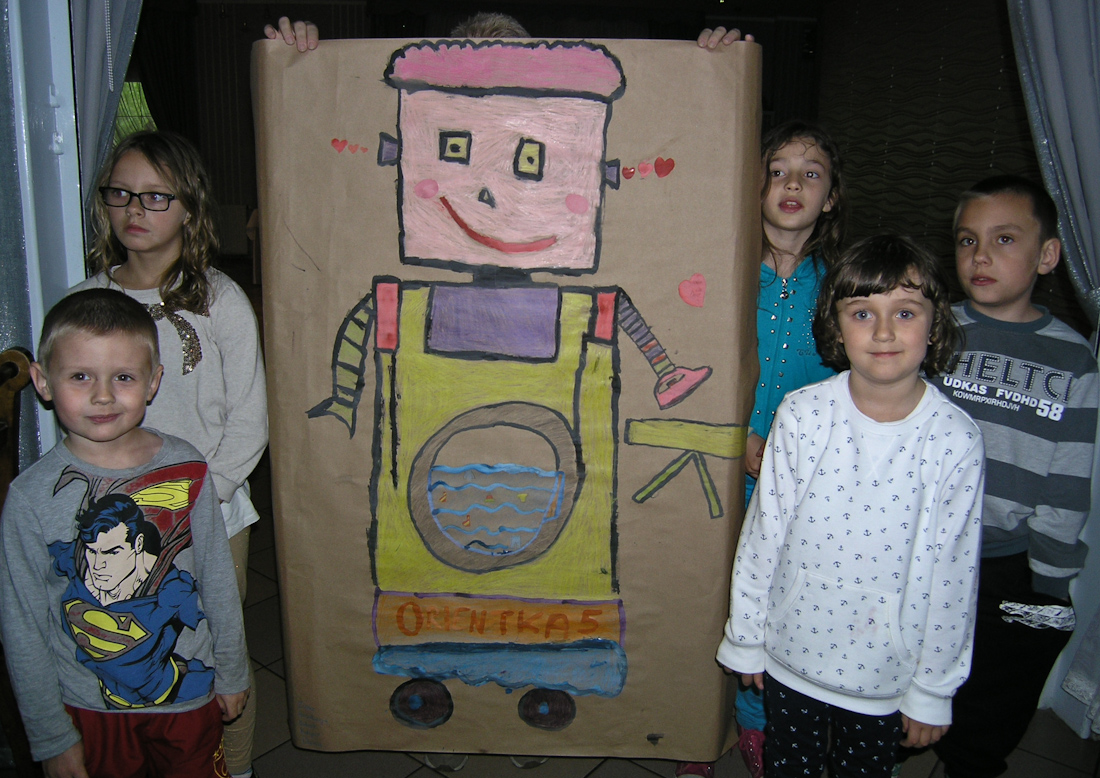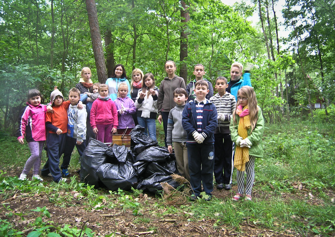 W czasie kiedy starsza grupa zajmowała się fotografią, młodsza wraz z opiekunami wykonywała grupowe prace plastyczne na temat ekologiczny. Temat dotyczył projektowania robota z wszystkiego tego, co możemy znaleźć pod ręką. Dzieci wykazały się wielkim zaangażowaniem, a przedstawione prace cechowała dbałość o szczegóły i duża fantazja młodych artystów. W międzyczasie wszyscy uczestnicy majówki postanowili zrobić prezent na 90-lecie Lasów Państwowych matce naturze. Zaplanowali wysprzątać okoliczne tereny leśne. Było to kontynuacją akcji, którą przeprowadziliśmy w miesiącu kwietniu, kiedy to podopieczni sprzątali tereny przylegające do jeziora.