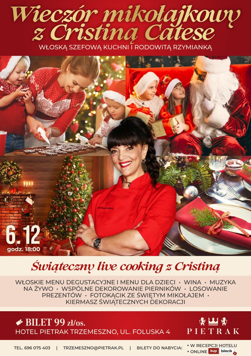 Już 6 grudnia w Hotelu Pietrak w Trzemesznie odbędzie się niezwykły Wieczór Mikołajkowy z Cristiną Catese – włoską szefową kuchni, rodowitą Rzymianką i znaną osobowością telewizyjną.