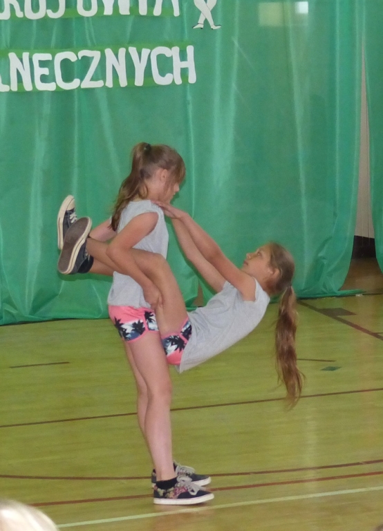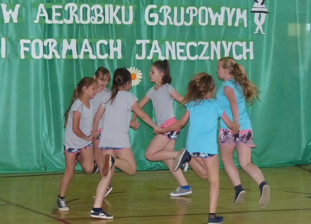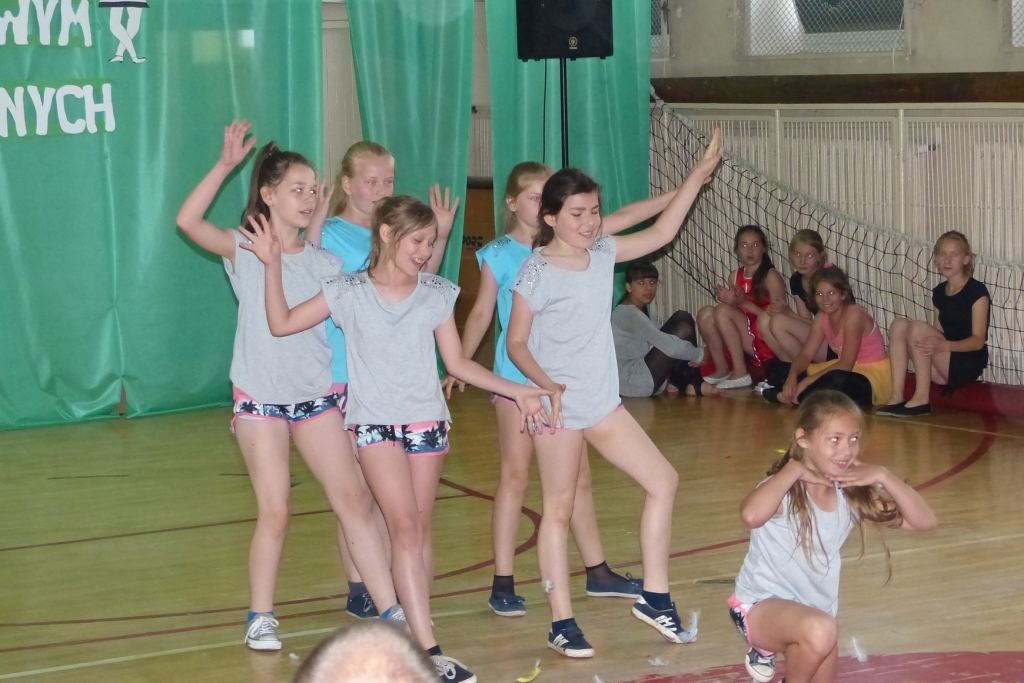 Wszystkie zespoły przygotowały ciekawe i różnorodne układy, a publiczność nagradzała ich zmagania gromkimi brawami. W oczekiwaniu na wyniki czas umilał zespół „Jedyneczki” a także uczennica kl. VI c Klaudia Michalak.