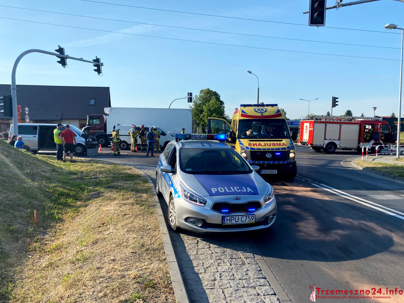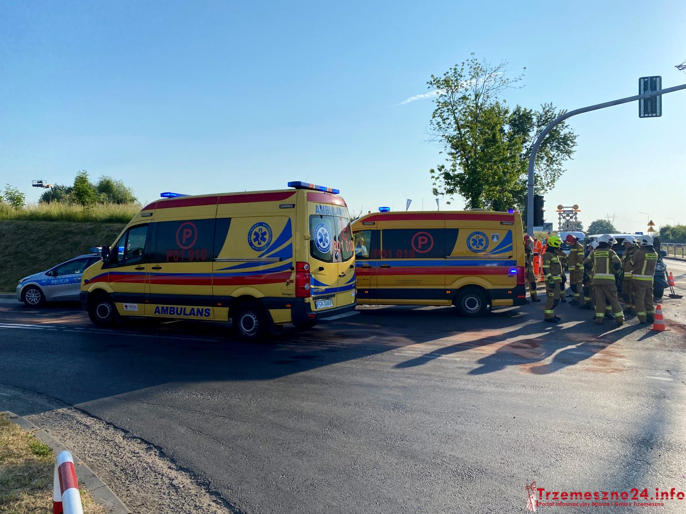 Na miejsce wezwano strażaków z Trzemeszna i Gniezna, dwie karetki pogotowia ratunkowego oraz policję. Ratownicy medyczni podjęli decyzję o transporcie dwóch osób do gnieźnieńskiego szpitala, celem wykonania dokładniejszych badań. Pozostali uczestnicy wypadku zostali przebadani na miejscu.