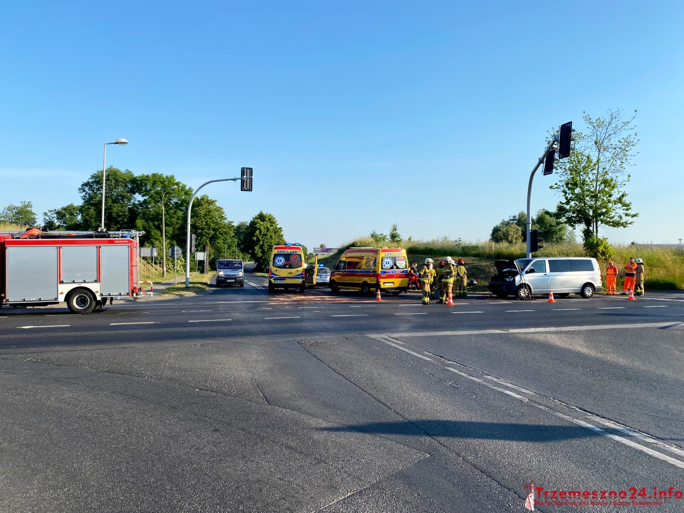 Jak nieoficjalnie wiadomo, kierujący busem marki volkswagen, jadąc od Torunia w kierunku Gniezna, uderzył w tył osobowego forda, który zatrzymał się na skrzyżowaniu na czerwonym świetle.