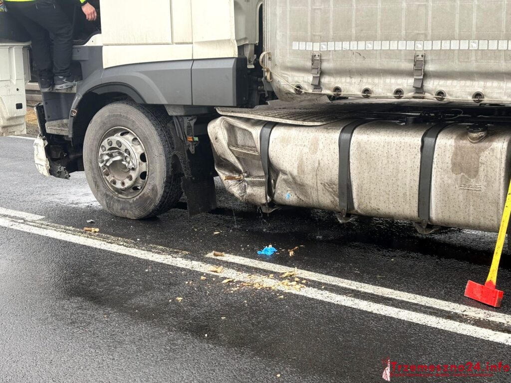 Przed przejazdem kolejowym pojazd marki infinity uderzył w bok naczepy, uszkadzając zbiornik z olejem napędowym. Pierwszy z samochodów zjechał do przydrożnego rowu.