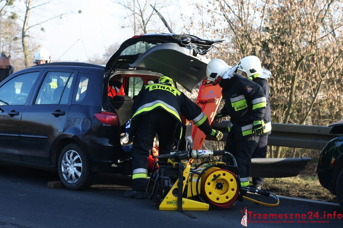 Z uwagi na stan zdrowia pasażerki mazdy, strażacy musieli wykonać dostęp do wnętrza pojazdu przy użyciu narzędzi hydraulicznych. Poszkodowana kobieta trafiła do szpitala w Gnieźnie.