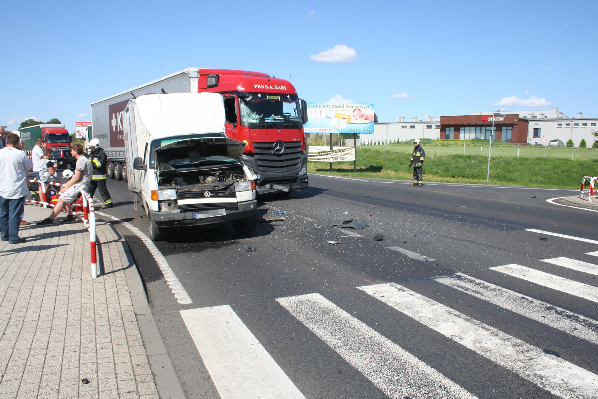 Dzisiaj (7 sierpnia) około godziny 10:30 na skrzyżowaniu ulicy Foluskiej z drogą krajową nr 15 doszło do zderzenia dwóch pojazdów. Jadący od strony miasta volkswagen transporter nie ustąpił pierwszeństwa przejazdu ciężarowemu mercedesowi, poruszającemu się po ”krajówce” .